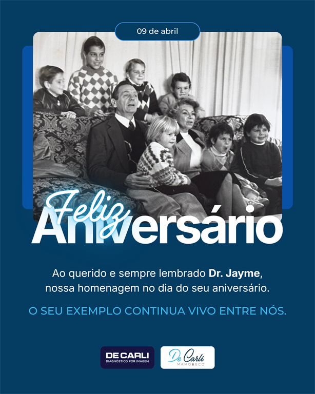 Ao querido e sempre lembrado Dr. Jayme De Carli, nossa homenagem neste dia especial.